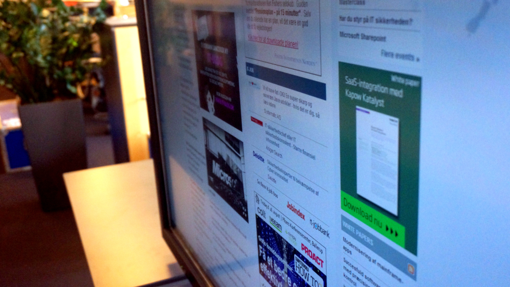 Skærmen fungerer bedst ved at sætte en computer til skærmen, hvorefter den selvfølgelig bruges som medie til hvad end, der skal vises. Med et HDMI-stik og et USB-kanel fra skærmen til at køre touch-delen, blev skærmbilledet fra min computer delt med det samme.