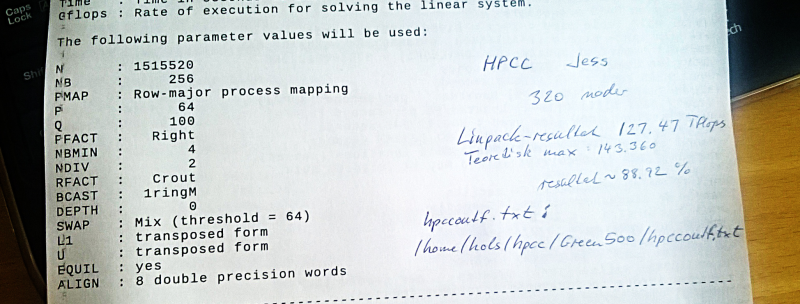 Med håndskrevne noter kan jeg ved selvsyn konstatere, at resultatet var 127 teraflop per sekund.