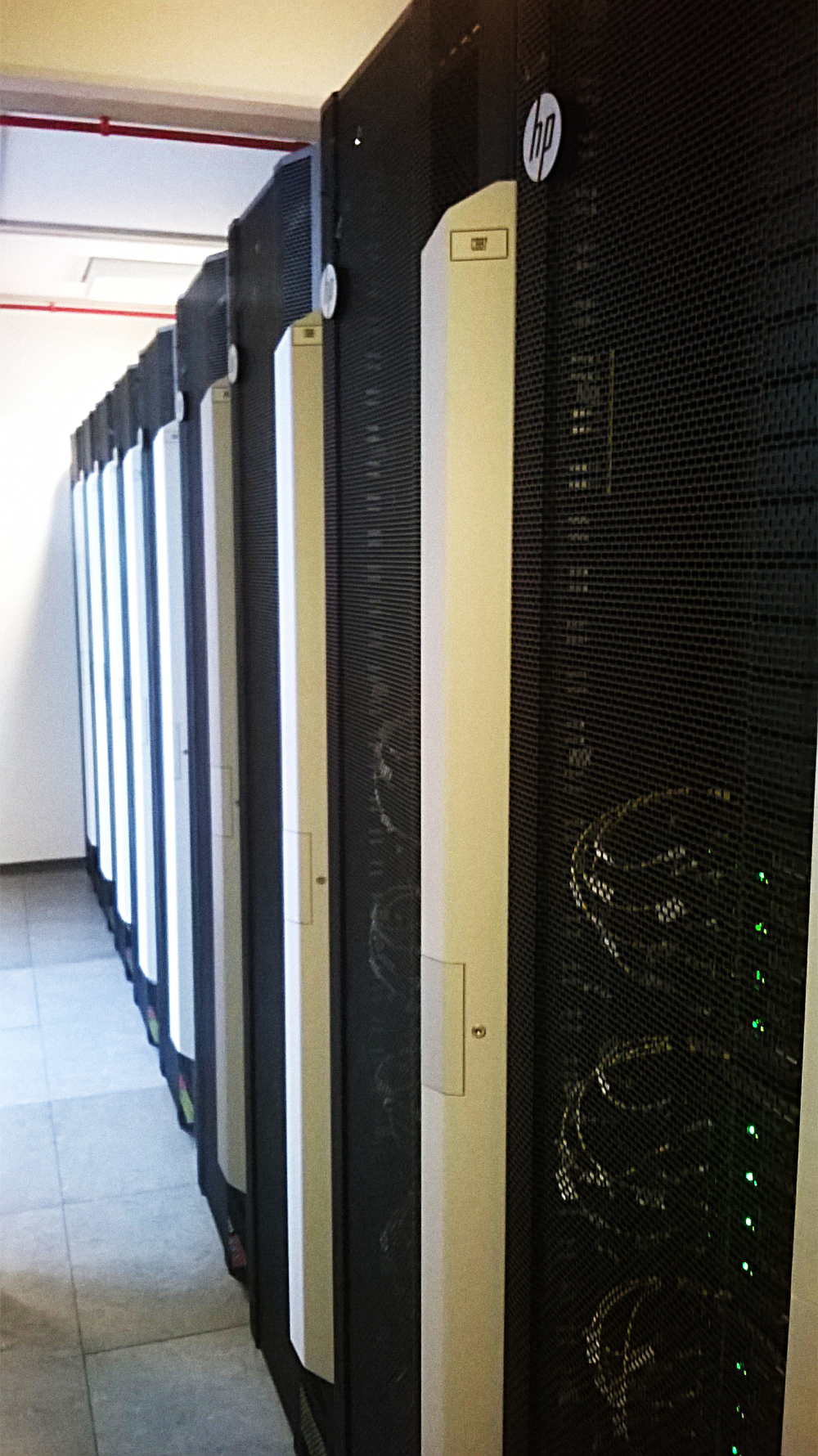 Bortset fra larmen hersker der fuldstændig harmoni. Netkablerne føres via store, brede kabelskuffer og strømkablerne er snoet sammen i sirlige guirlander, der hænger ned fra loftet.