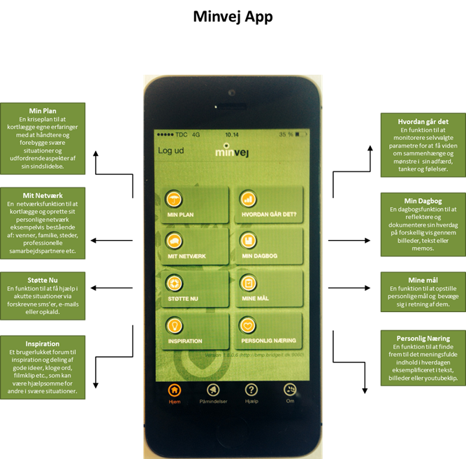 Det er den danske app MinVej et eksempel på. App'en har udviklet sig til at være et ikke ubetydeligt holdepunkt i hverdagen for en række københavnere med alvorlige psykiske lidelser. De er en del af en forsøgsgruppe i Københavns Kommune, som anvender app'en.