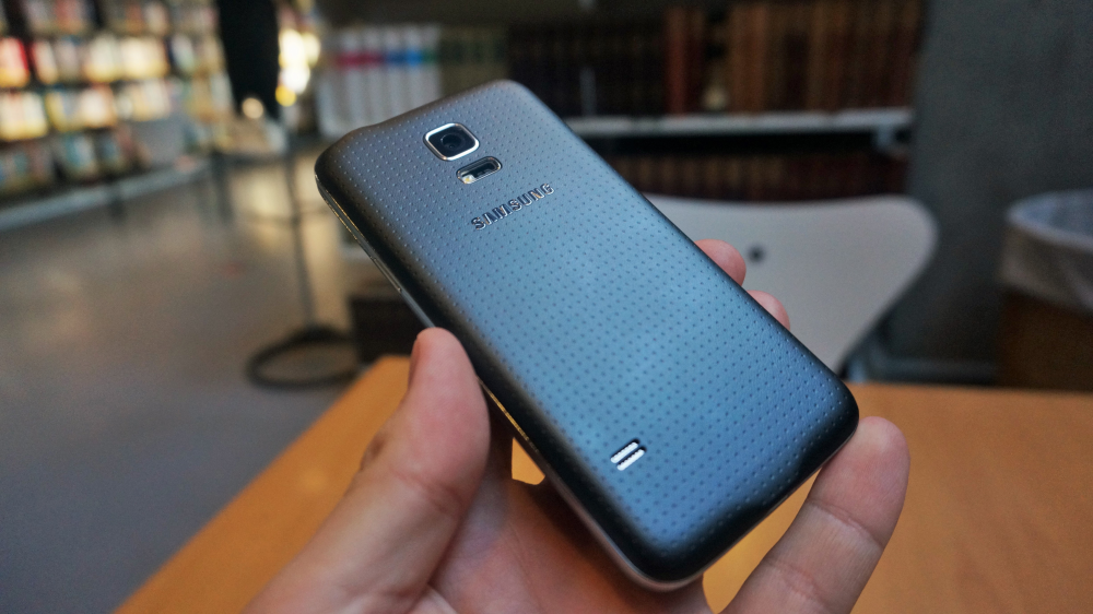 Den 4,7 tommer store - eller i dette tilfælde lille - skærm er omkranset af den samme metal-lignende plastik som S5 og med samme prikkede plastik på bagsiden.