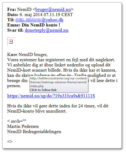 Her bliver der eksempelvis sendt mails ud til en lang række danskere, der kan få besked om, at deres bank har problemer med deaktiverede NemID-nøglekort.