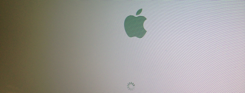 "Jeg har præcis det samme problem. Det startede med den ekstreme vandrette forskydning, og så kunne jeg ikke genstarte (gik i stå ved lyseblå/hvid skærm) efter at have vist et "low res" Apple logo med horisontale striber igennem det," lyder det fra en bruger.
