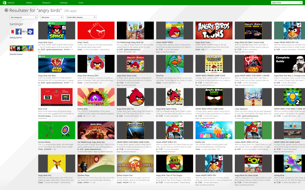 Prøv bare at lave en søgning på Angry Birds - mange af topresultaterne er mystiske betalingsprogrammer som reelt bare er en gennemgang eller lidt snik-snak, mens de rigtige programmer er gemt længere nede.