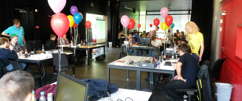 "Har du overhovedet ikke hørt efter om de parallelle systemer?" lyder det efter to en halv times intense tasterier fra et af bordene, hvor der hænger fire balloner.