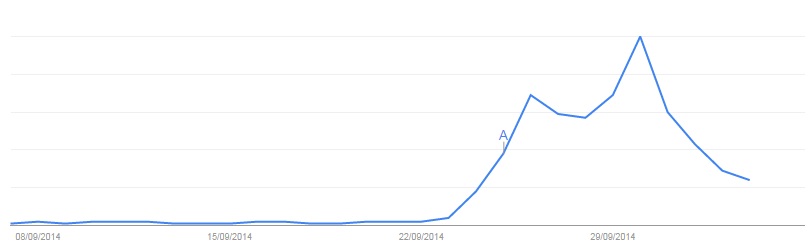 Her er interesse-kurven for Ello Ifølge Google Trends. Kurven viser, at interessen toppede tirsdag den 30. september. hvorefter det er gåët nedad bakke.