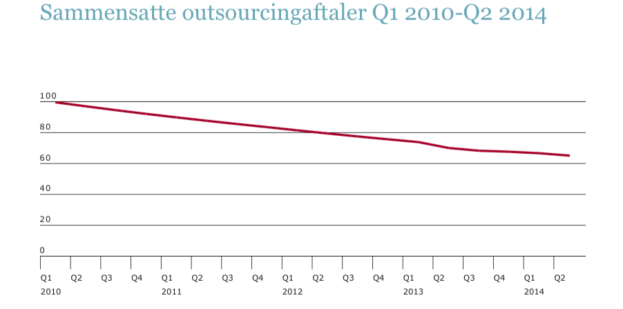 Ifølge indekset er prisen for outsourcing-aftaler faldet med 35 procent fra starten af 2010 frem til midten af 2014.
