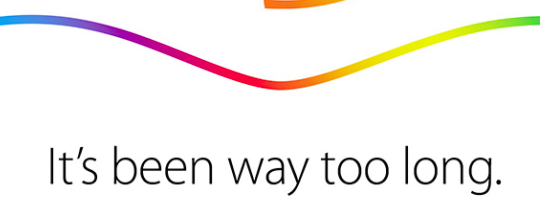 Invitationen der her til aften blev udsendt til den internationale tech-presse forestiller et udsnit af et Apple-logo, og under logoet står der "It's been way too long" - eller på dansk "Det er alt for lang tid siden."