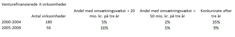 Blandt de 180 it-virksomheder, som modtog venturekapital før og under dotcom-bølgen, har kun fem procent formået at skabe en vækst i omsætningen på mere end 20 millioner kroner efter tre år.