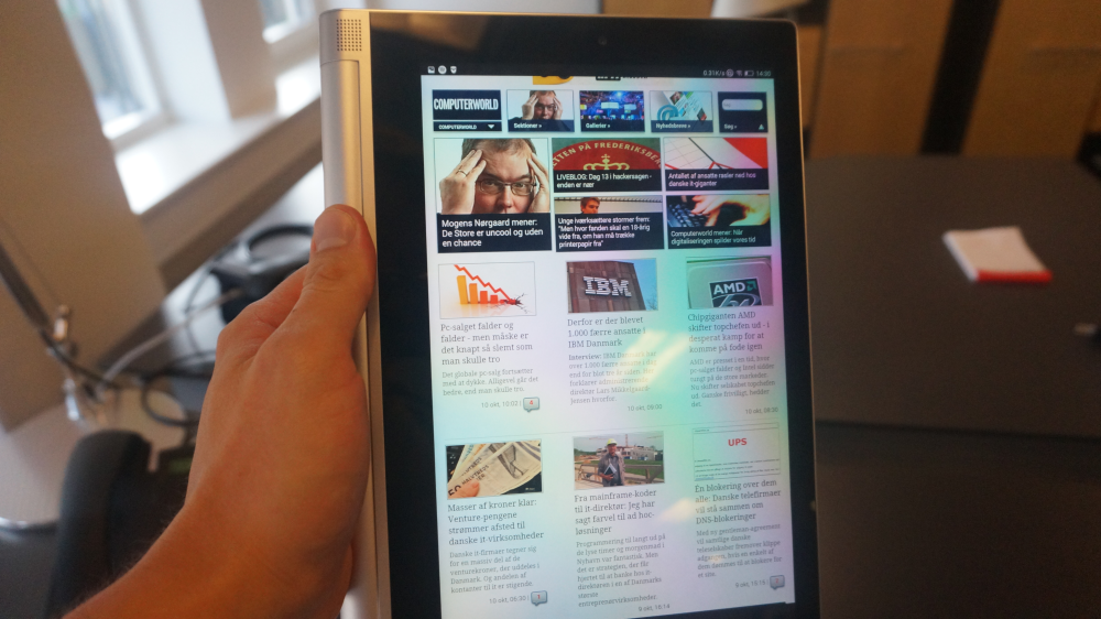 Det må dog vente. Vi har indtil videre fået fingre i den lidt mindre - og nok også billigere og mere consumer-venlige - Yoga Tablet 2.