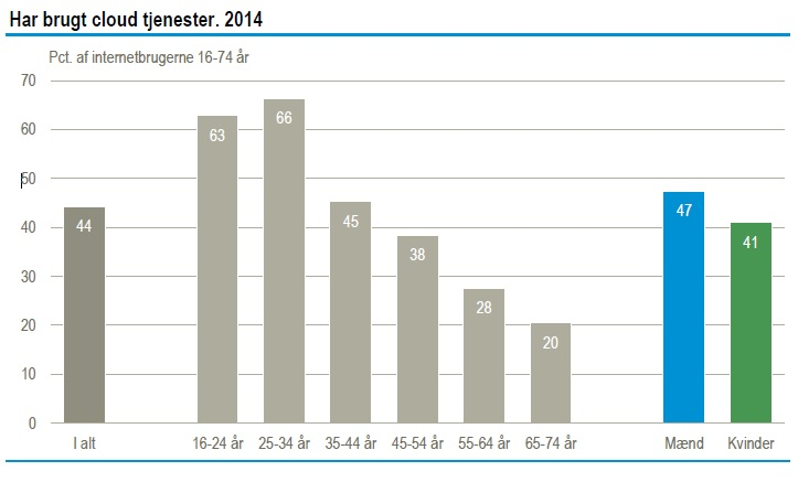 Her viser det sig, at 44 procent af online-danskere i alderen 16 til 74 år har gemt dokumenter på cloud-tjenester svarende til omkring 1,8 millioner danskere.