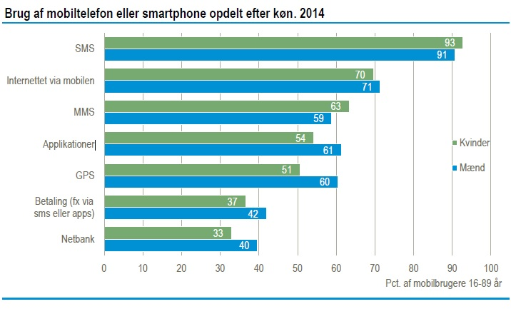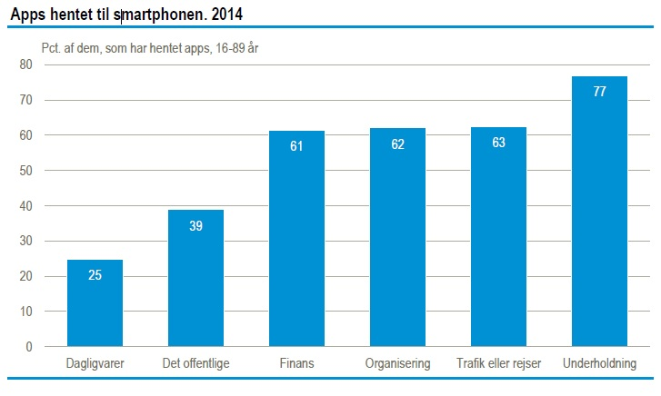 Det fremgår tydeligt af Danmarks Statistiks opgørelse over de apps, som danskerne i 2014 har hentet til deres smartphones.