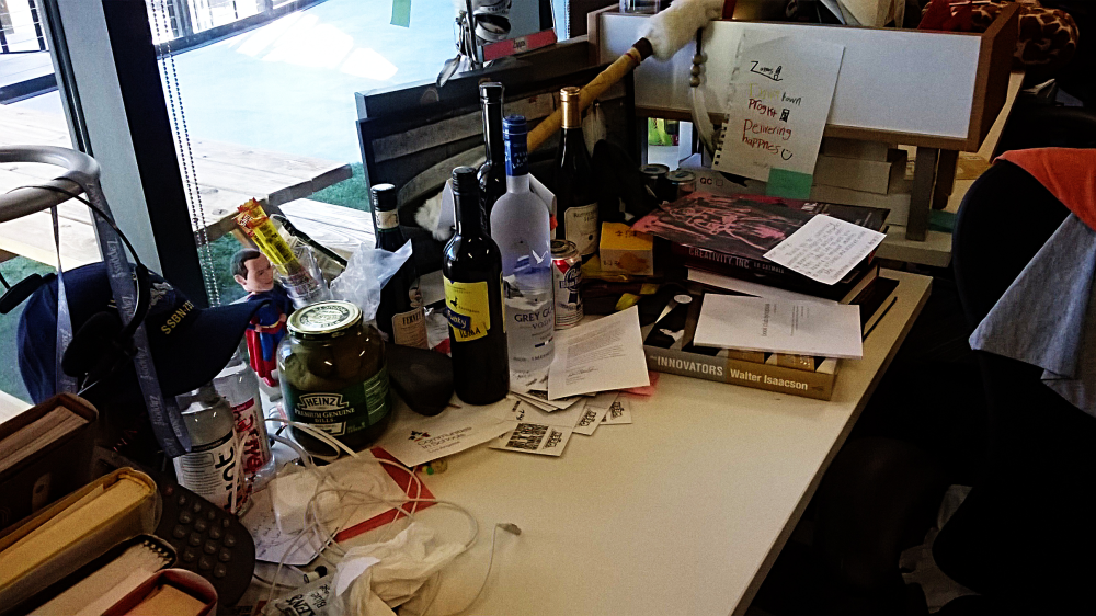 De tidligere ansatte på rådhuset vil næppe kunne genkende deres gamle arbejdsplads, der er et gigantisk kaos med legetøj, computerskærme samt personlige dingenoter og dippedutter spredt ud over skriveborde eller hængende ned fra loftet.