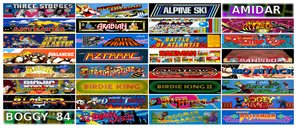 På listen over spil finder du klassikere som Astro Invader, Pac-Man, OutRun, Street Fighter II, Track & Field, Frogger.