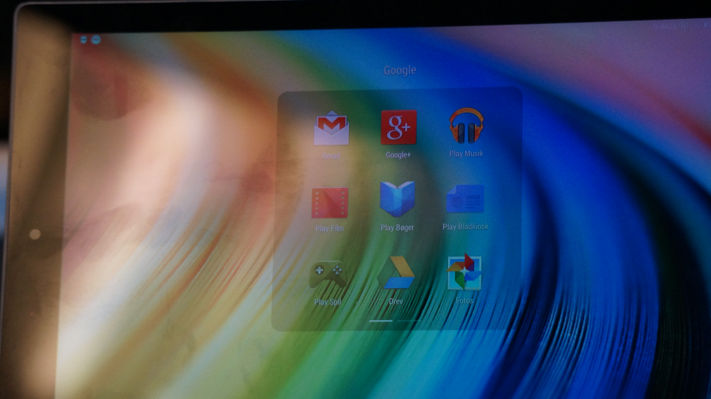 13 tommer er meget stort for en tablet, men skærmen er flot og farverig og står meget skarpt, selvom at den godt kunne være lidt mere kraftig i lysstyrken.