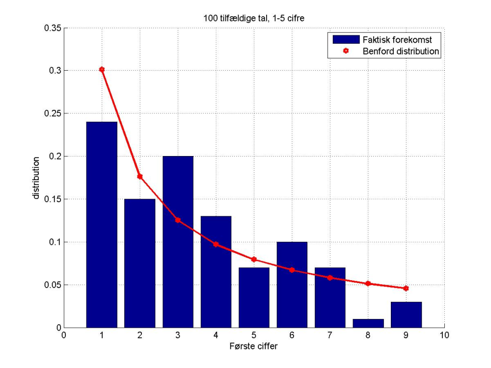 Det er som sagt ikke alle typer data, som kan vurderes med Benford, men f.eks. økonomiske data viser sig at passe godt.