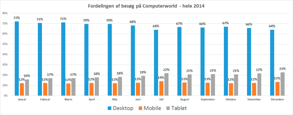 Det samme gælder på Computerworld hvor blot 68 procent af de besøgende i 2014 kom fra en desktop-computer.