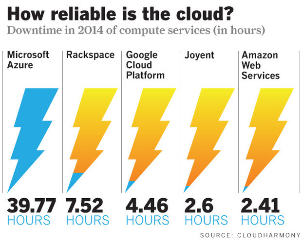 For selvom cloud-datacentrene generelt har mindst lige så høje oppetider (hvis ikke højere) som mange interne datacentre i virksomhederne, så påvirker det mange brugere på én gang, hvis en cloud-tjeneste er nede.