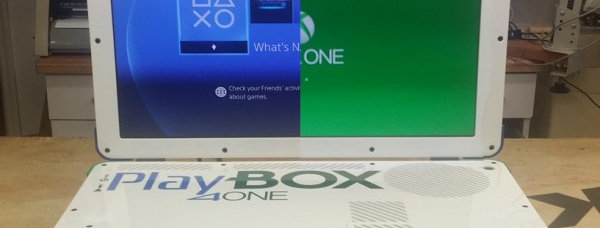 Playstation-delen ligger i venstre del af kabinettet, mens Xbox One er placeret i højre side.