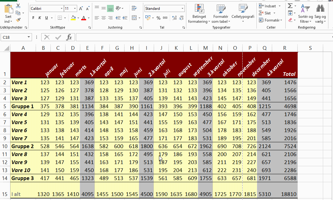 Så markeres alle tal i dit arbejde, og du kan trykke slet, uden at du sletter formler, som bliver påvirket af dine data. Smart hvis du har brugt tid på et budget, som du gerne vil genbruge, så alle formler er gemt.