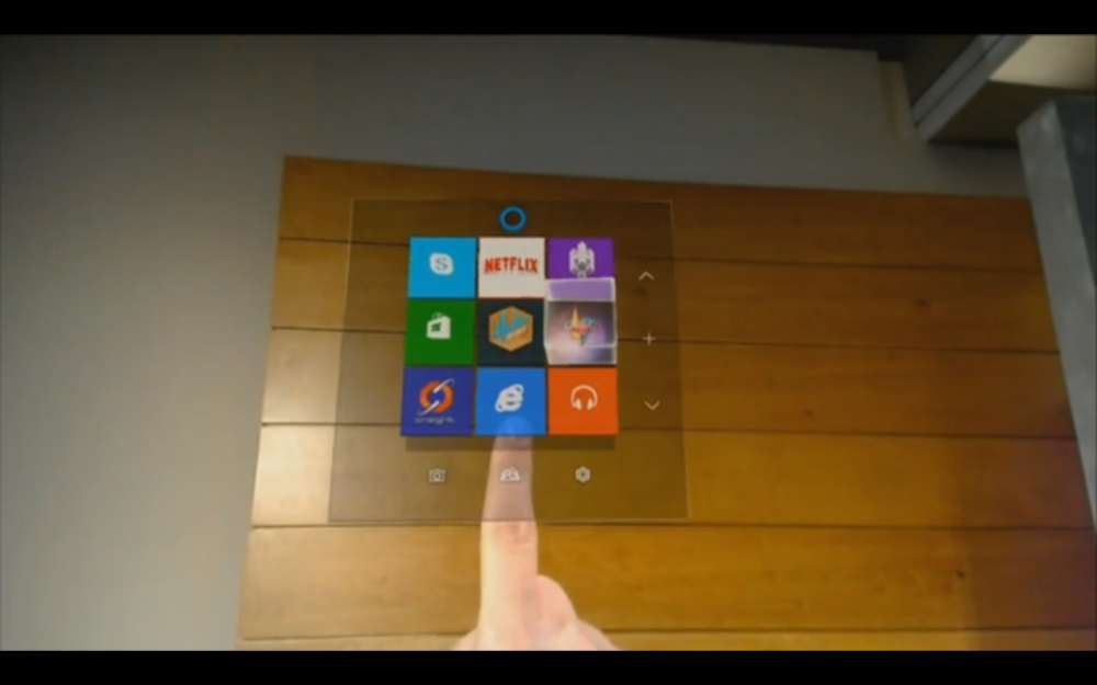 Det kan være en form for virtuel skærm på væggen, da brillerne kan fornemme rummet omkring dig.