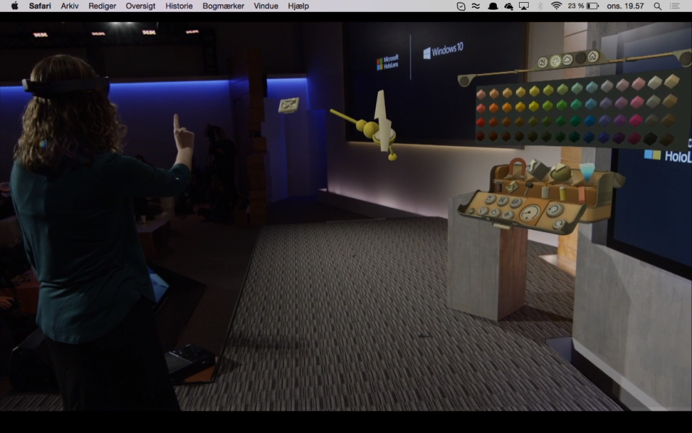 Brillerne, HoloLens, viser verden omkring dig igennem dens glas, men via glasset i brillerne kan du se et ekstra lag på verden, som softwaren sætter på.