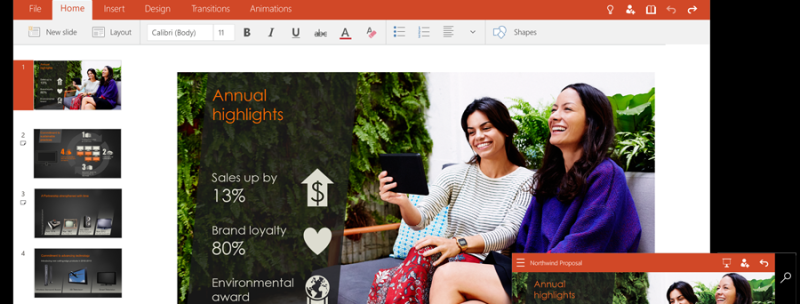 Præsentationerne kan bygges med masser af fikse animationer, overgange og grafiske effekter, så materialet kan overbevise tilhører om indholdet. Den trykfølsomme skærm kan også anvendes sammen med eksempelvis en stylus for at lave markeringer direkte i præsentationen.