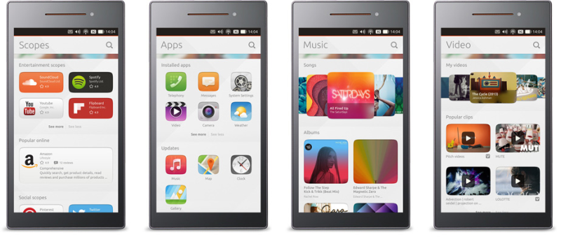 Det er dog heller ikke nødvendigt, hvis du spørger Canonical. Der vil være enkelte apps såsom Facebook, Twitter, Evernote og Dropbox og selvfølgelig Amazon, men ellers fokuserer Ubuntu on Phones langt hen ad vejen på "Scopes" - dedikerede skriveborde på telefonen, som enten er til video, kontakter, musik og så videre.