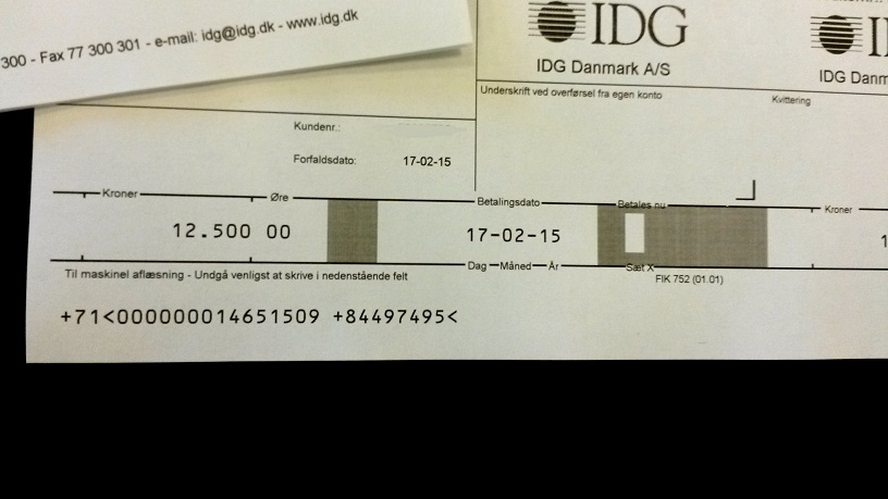 Kø på posthuset for at betale regninger mod et gebyr på en god håndfuld kroner. Nej tak.