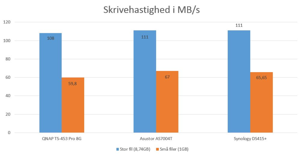 NAS-servere er dog netop designet til at kunne håndtere flere samtidige brugere, QNAP påstår eksempelvis, at den samlede læse- og skrive-hastighed i begge tilfælde lyder på hele 420 megabyte per sekund, hvis fire computere presser NAS-serveren til det yderste på samme tid - under optimale forudsætninger.