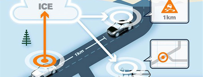 På den måde kan data bringes rundt til alle biler, der er koblet sammen via skyen. Bilens computer kan så udregne løsningsforslag til forudsete problemer i form af eksempelvis en trafikkø eller et isslag.