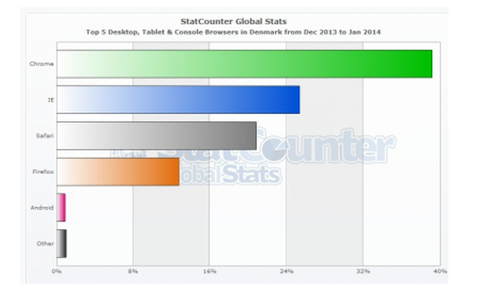 IE sidder på godt 25 procent af kagen, kun overgået af Chrome.