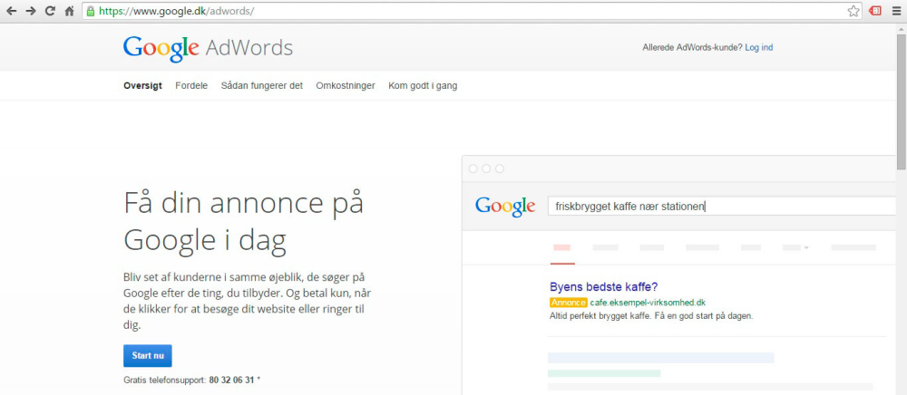 Kort fortalt er Google Adwords de små tekstannoncer, du ser, når du søger efter noget inde i Google.dk.