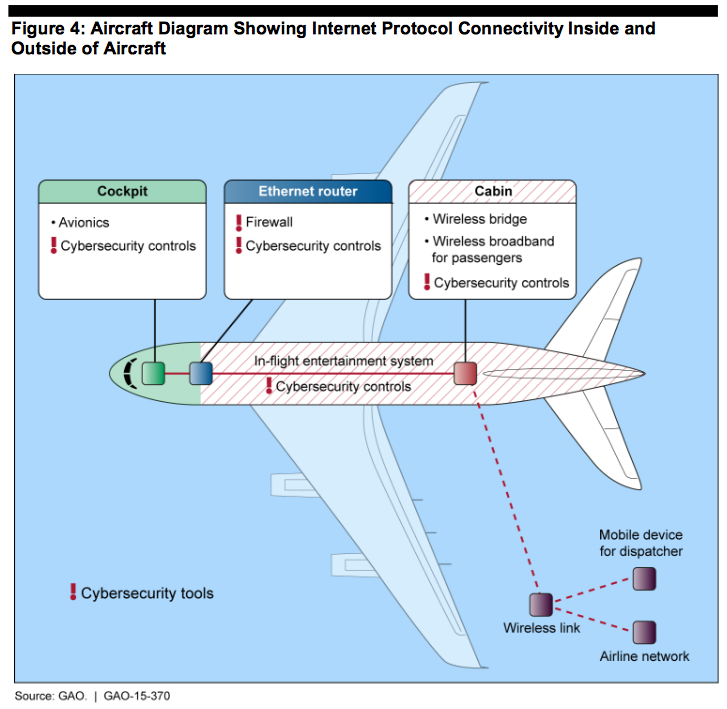 GAO har også begået denne illustration af, hvordan internet i flyet og sikkerhed hænger sammen: