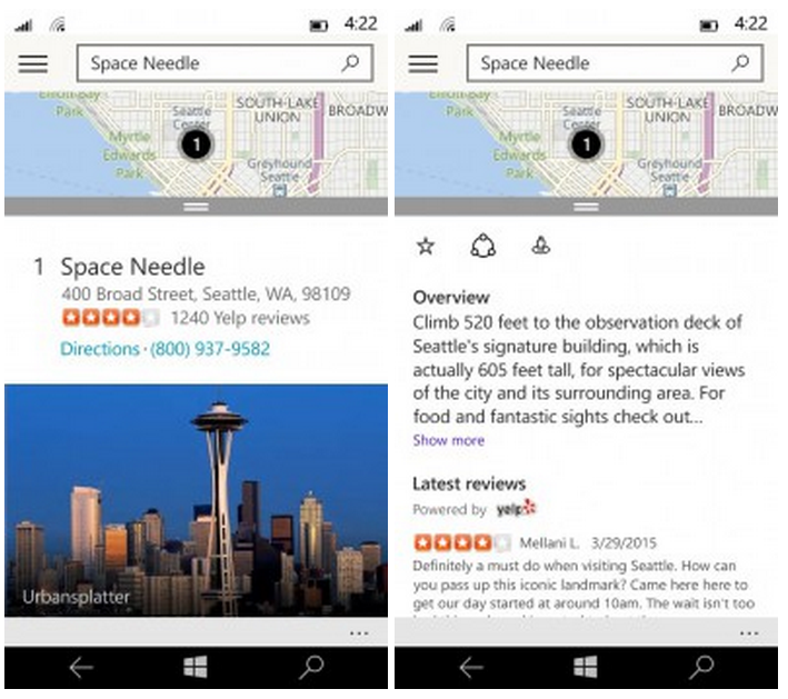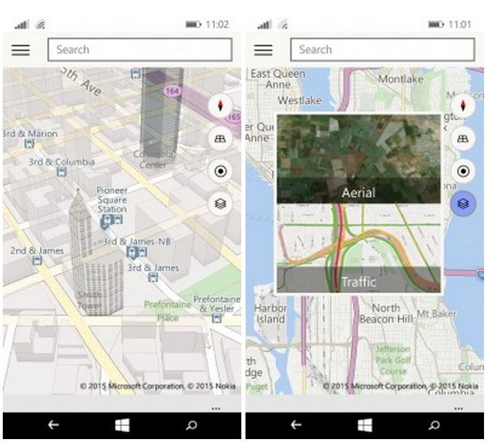 Appen integrerer selskabets egen Bing Maps-tjeneste med den Nokia-udviklede HERE kort-tjeneste for første gang.