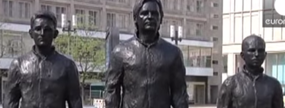 Nu er de blevet hyldet med bronzestatuer på Alexanderplatz i Berlin, hvor skulptøren Davide Dormino har placeret kopier af de tre whistleblowere, der står på hver deres stol.