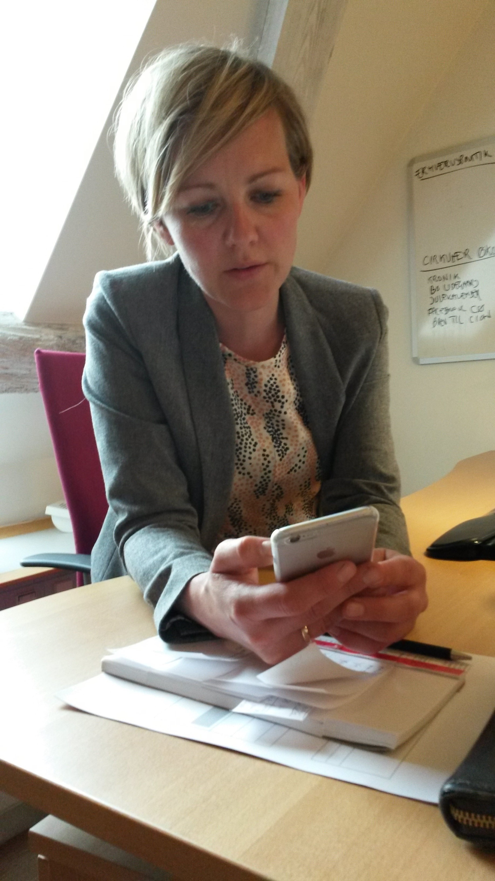 Folketingsmedlem Ida Auken (R) har allerede taget sin iPhone frem, før jeg har set mig ned på hendes Christiansborg-kontor.
