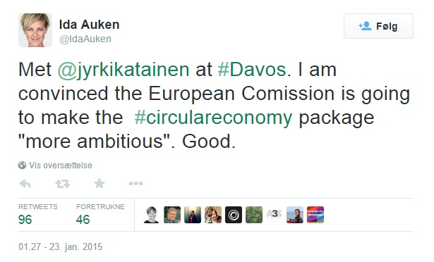 "Jeg havde spurgt ham, om vi skulle sætte et møde op, mens vi begge var i Davos, men han svarede ikke på mine beskeder. Derfor skrev jeg et tweet, som jeg bad nogen om at retweete. Kort efter havde 100 delt beskeden, og 50 minutter senere sendte Jyrki en sms om, at han ville få sat et møde op," siger Ida Auken.
