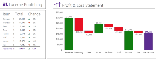 Det gælder blandt andet seks nye designs af diagrammer i Excel, der i den engelske udgave af softwaren kaldes Waterfall, Histogram, Pareto, Box & Whisker, Treemap og Sunburst. Du kan se et par af dem herunder: