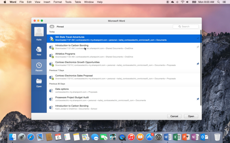 Ligeledes er Office selvfølgelig stadig forbundet med OneDrive i skyen.