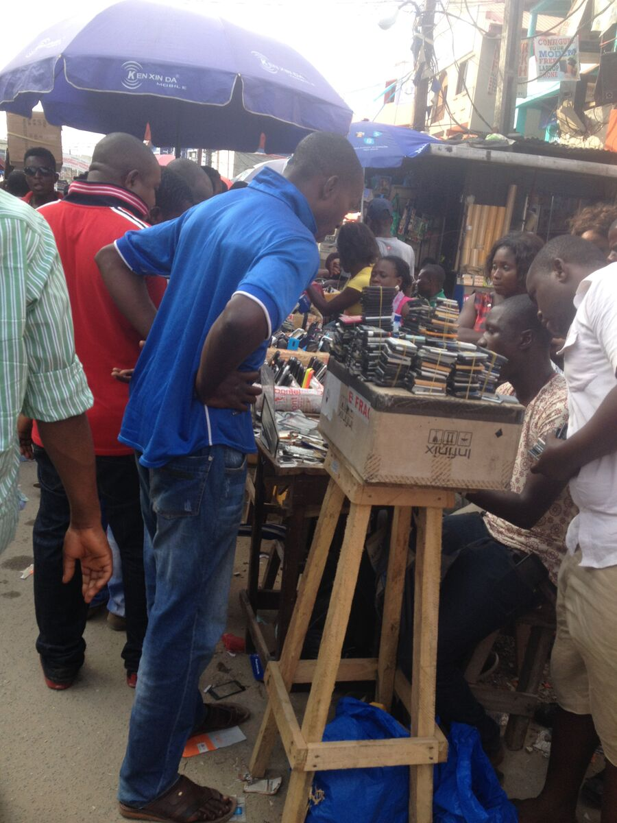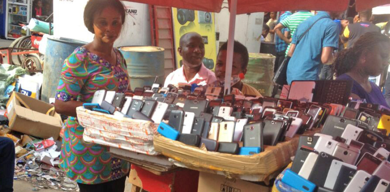 I Computer Village kan man tydeligt aflæse Kinas voksende indflydelse på det afrikanske kontinent. Kinesisk producerede mobiltelefoner med ukendte navne som Innjoo, iTel, MBO og Q7 er i høj kurs.