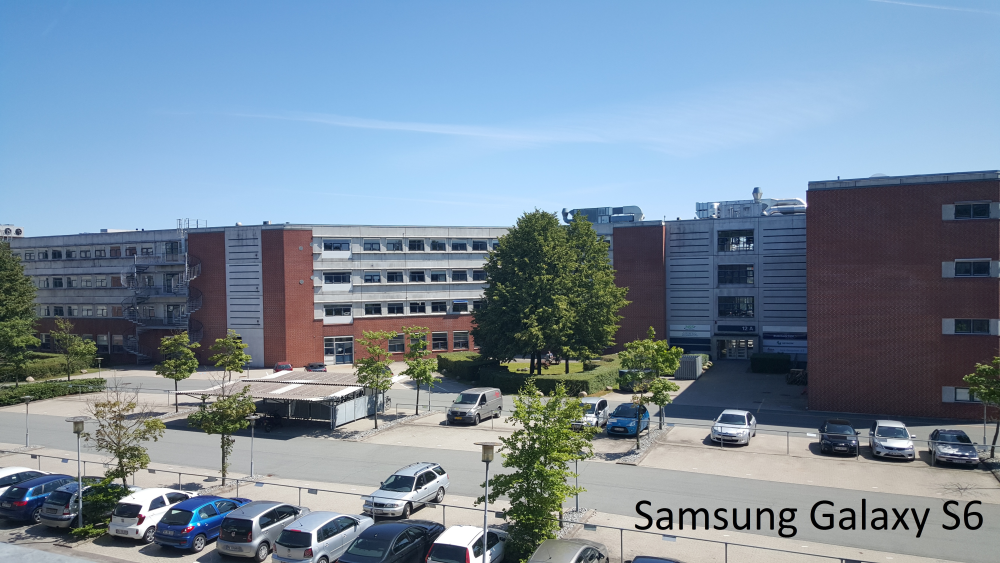 Det er også her, at man virkelig kan nyde skarpheden i Samsung Galaxy S6 og LG G4's kameraer, hvor der bliver udnyttet den høje opløsning. Vi kunne faktisk se nummerpladerne på bilerne, der var længst væk på parkeringspladsen.