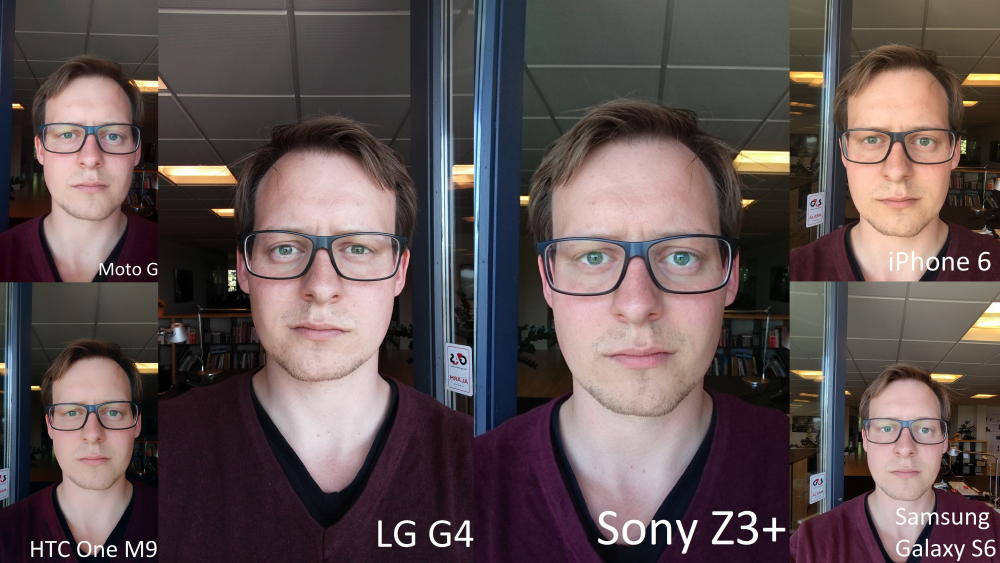 Ligeledes er det værd at bemærke, at iPhone 6 giver et mere varmt/gulligt billede, hvilket nok kan debateres om er mere realistisk eller ej. Samtidig er iPhone 6 og Moto G også de mest grynede af billederne, men det er forståeligt, når man kigger på, hvor få megapixels frontkameraerne har.