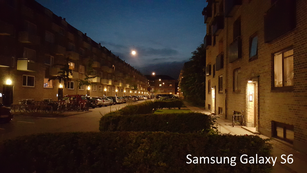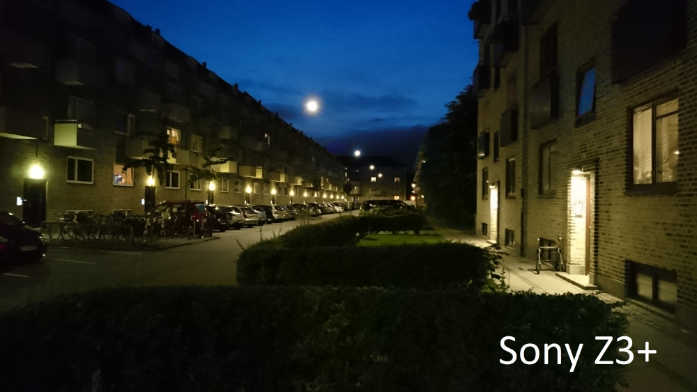 Ligeledes har Samsung Galaxy S6 og Sony Z3+ også taget flotte aftenbilleder, hvor Samsung Galaxy S6 er et lidt mere gulligt billede end Sony's, der har en nærmest grøn glød.