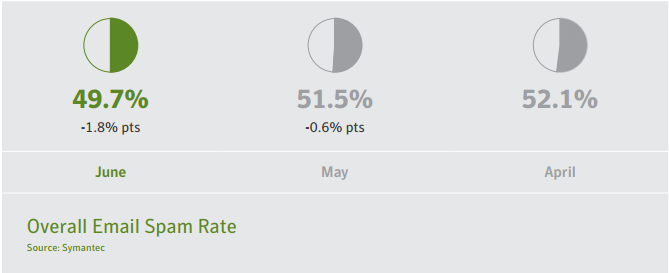 I juni 2015 blev der ifølge Symantec sendt 704 milliarder mails.