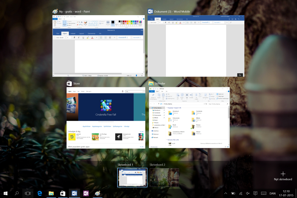 Windowstast + ctrl + højre/venstre pil: Du går fra det ene virtuelle skrivebord til det andet.