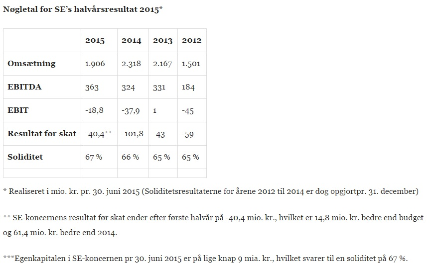 Selvom første halvårs driftsresultat før afskrivninger (EBITDA) ifølge SE har udviklet sig bedre end forventet til 363 millioner kroner, 39 millioner kroner bedre end sidste år, så lyder underskuddet før skat på 40 millioner kroner.