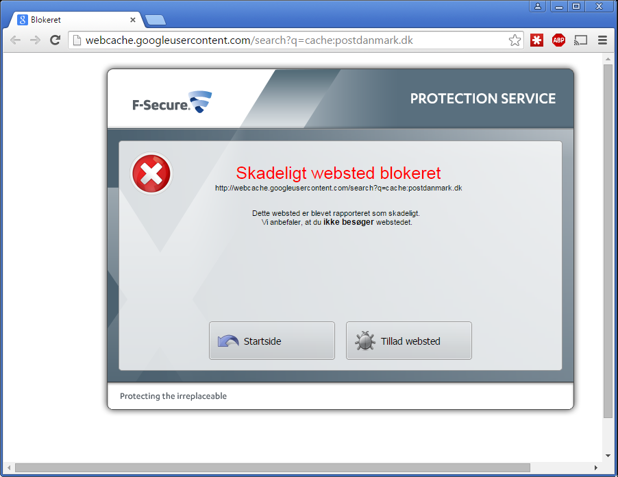 "Jeg er jo lidt stædig, så jeg prøvede også at loade en cachet version fra Googles cache, og så fik jeg en antivirusadvarsel fra F-secure," forklarer læseren, Thomas W. Olsen.