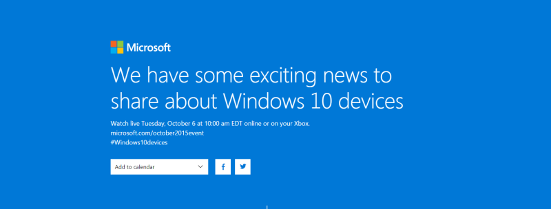 Microsoft har inviteret pressen til et stort event i New York City tirsdag den 6. oktober, hvor overskriften lyder "We have some exciting news to share about Windows 10 devices."