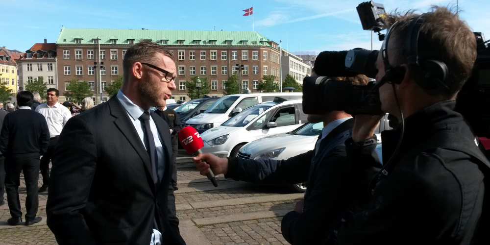Kort efter interviewet med Joachim B. Olsen ankommer formand for Taxifører i Danmark, Søren H. Nicolaisen, til området.